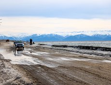 Для обеспечения безопасности дорожного движения специалисты прочищали водопропускные трубы, в которых образовался лед. С помощью техники убирали воду с проезжей части. Чтобы избежать гололеда, дорогу посыпали песчано-гравийной смесью.