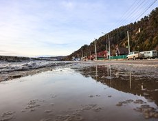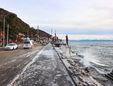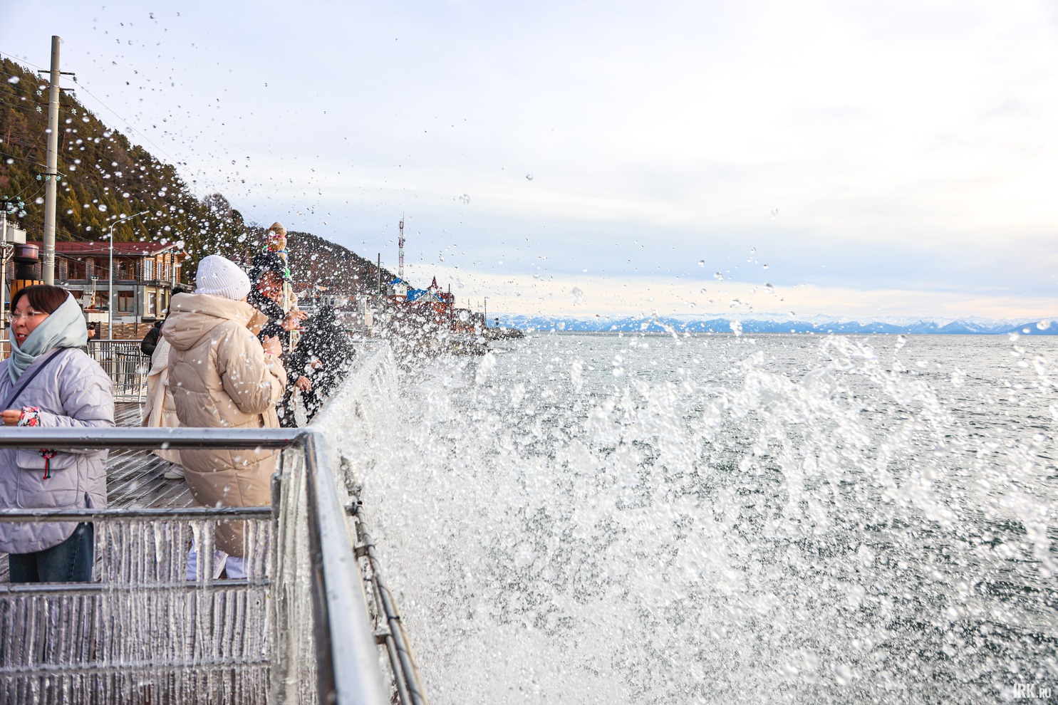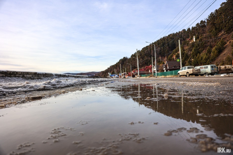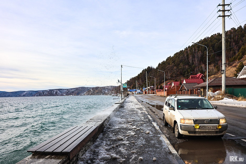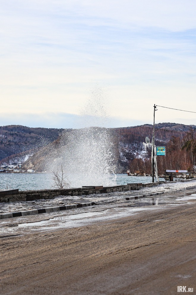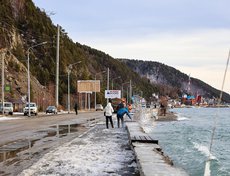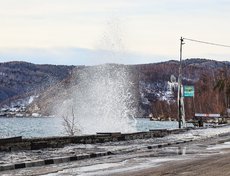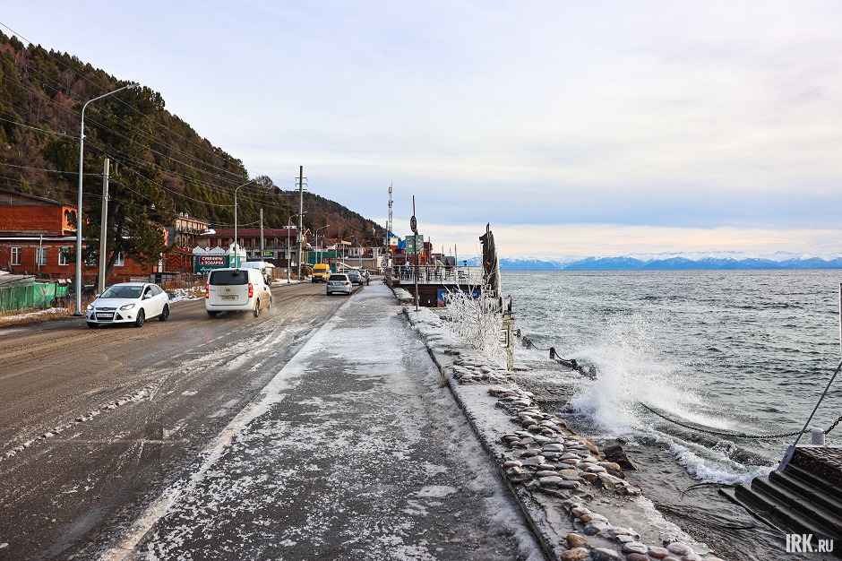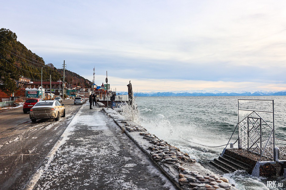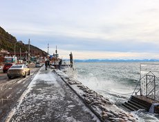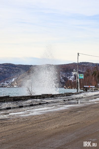 Прибрежный участок автомобильной дороги на улице Горького в Листвянке оказался частично подтоплен. Из-за ветра образовались высокие волн, которые выплескивались через ограждение и затапливали проезжую часть. Однако чрезвычайной ситуации в этом нет, это обычное явление для осени.
