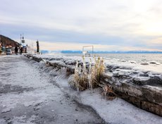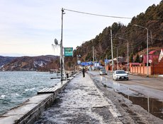 В Листвянке волны Байкала подтопили дорогу на улице Горького