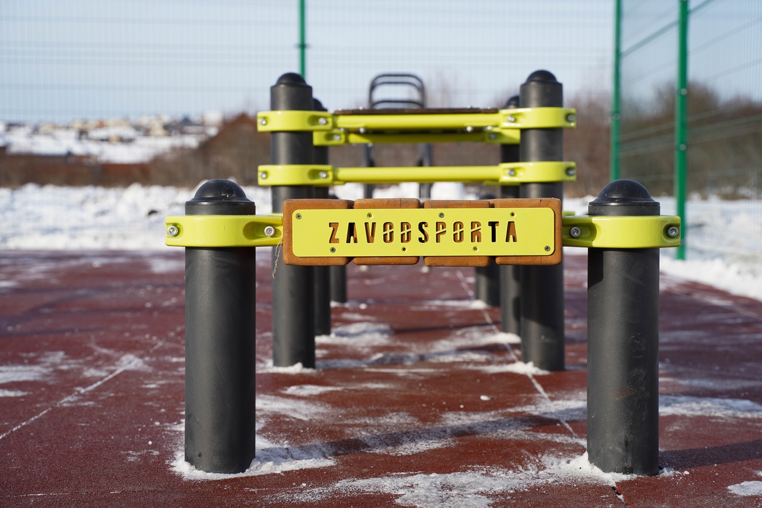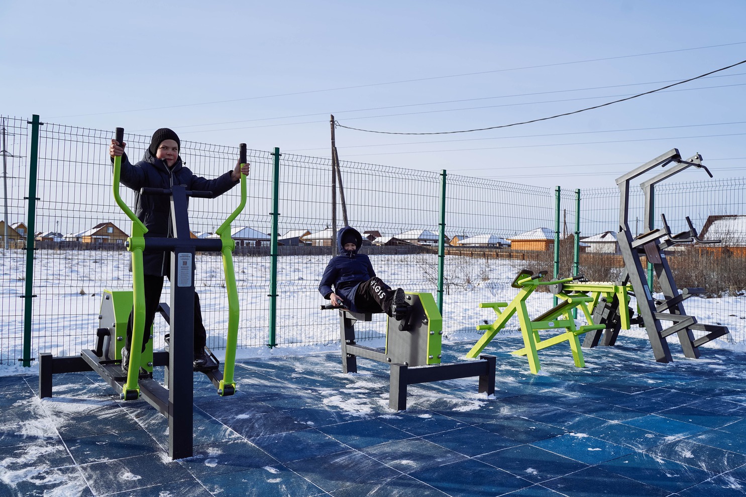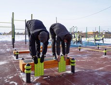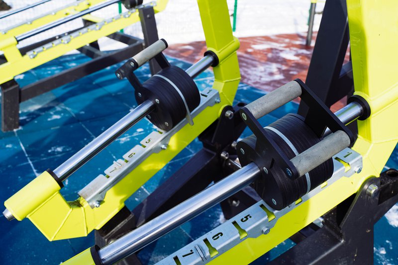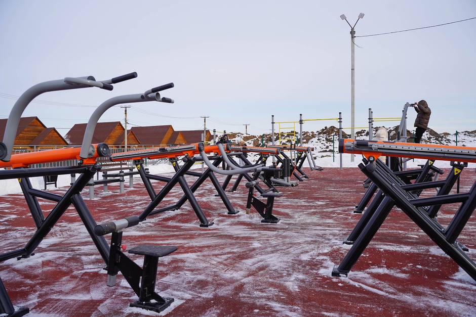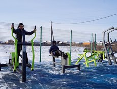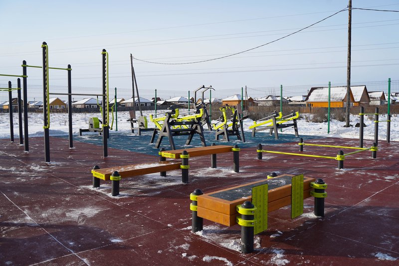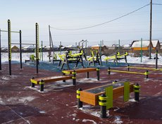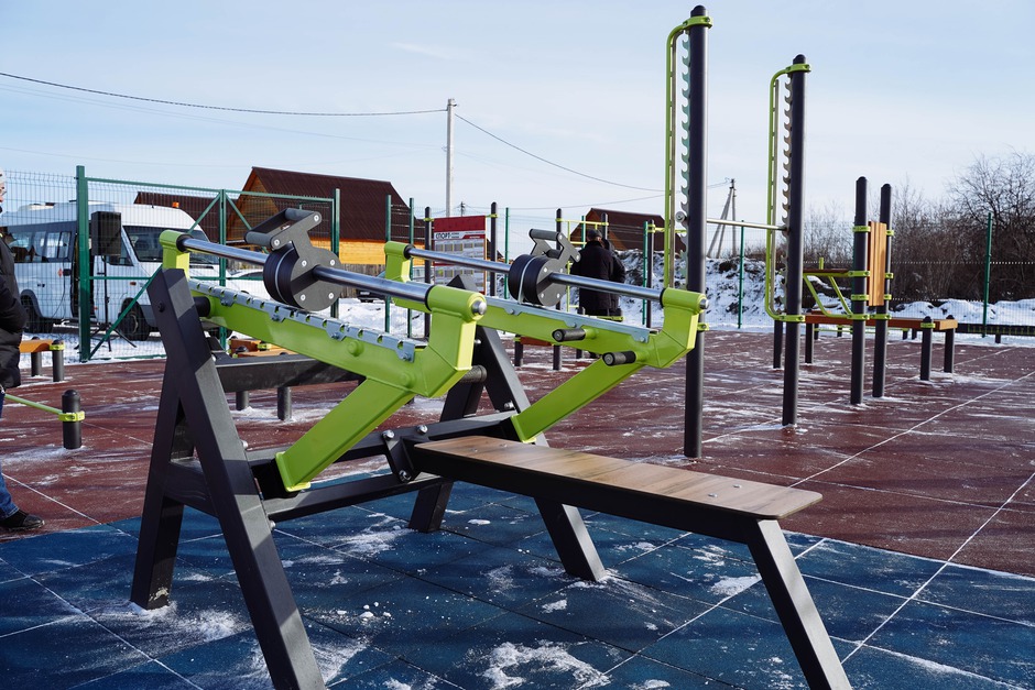 Основание спортплощадки с резинополом подрядная организация подготовила в летний период по муниципальному контракту. Осенью установили специализированное спортивное оборудование. В комплексе более 20 наименований: гимнастические скамьи, турник, брусья, рукоход, силовые тренажеры.