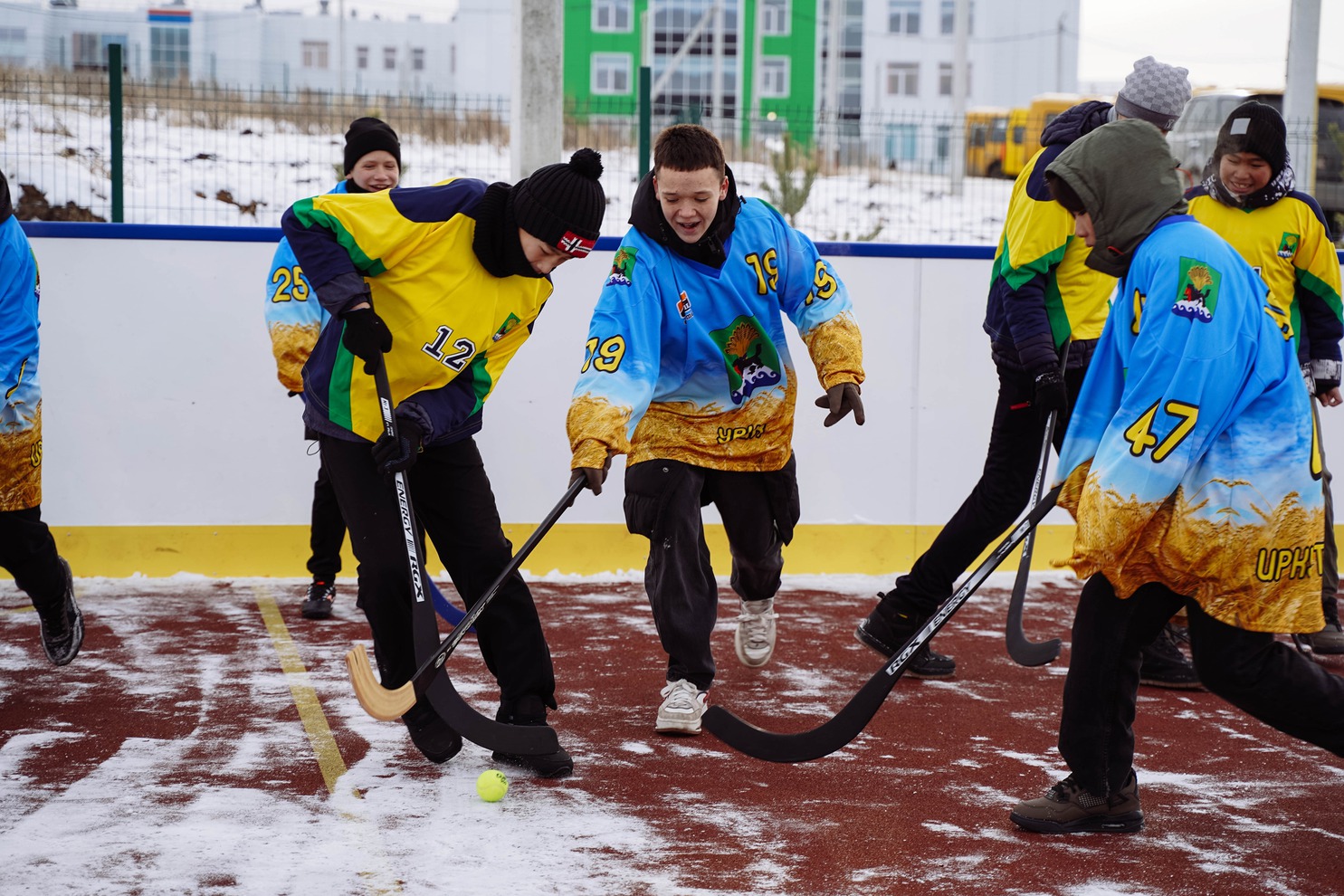 На открытии «умной» спортивной площадки в Урике юные спортсмены сразу испытали покрытия — сыграли в хоккей. В летнее время на ней можно играть в футбол, баскетбол. Размеры площадки стандартные – 20х40 метров. Есть хоккейные ворота, баскетбольные щиты и кольца.
