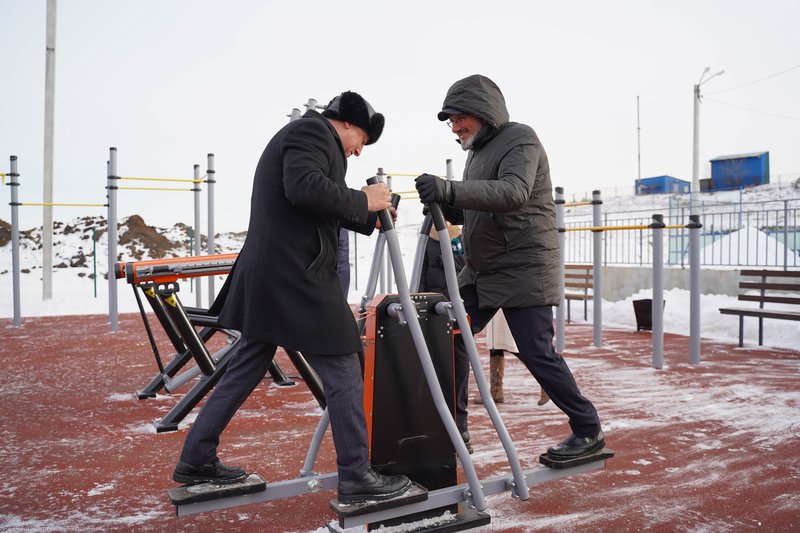 Все присутствующие оценили тренажёры в зоне воркаута. Они расположились на площадке размером 25х17. На каждом оборудовании размещён QR-код, который содержит информацию о том, как проводить тренировку на данных тренажёрах эффективно и правильно, — это отличительная особенность «умной» площадки.