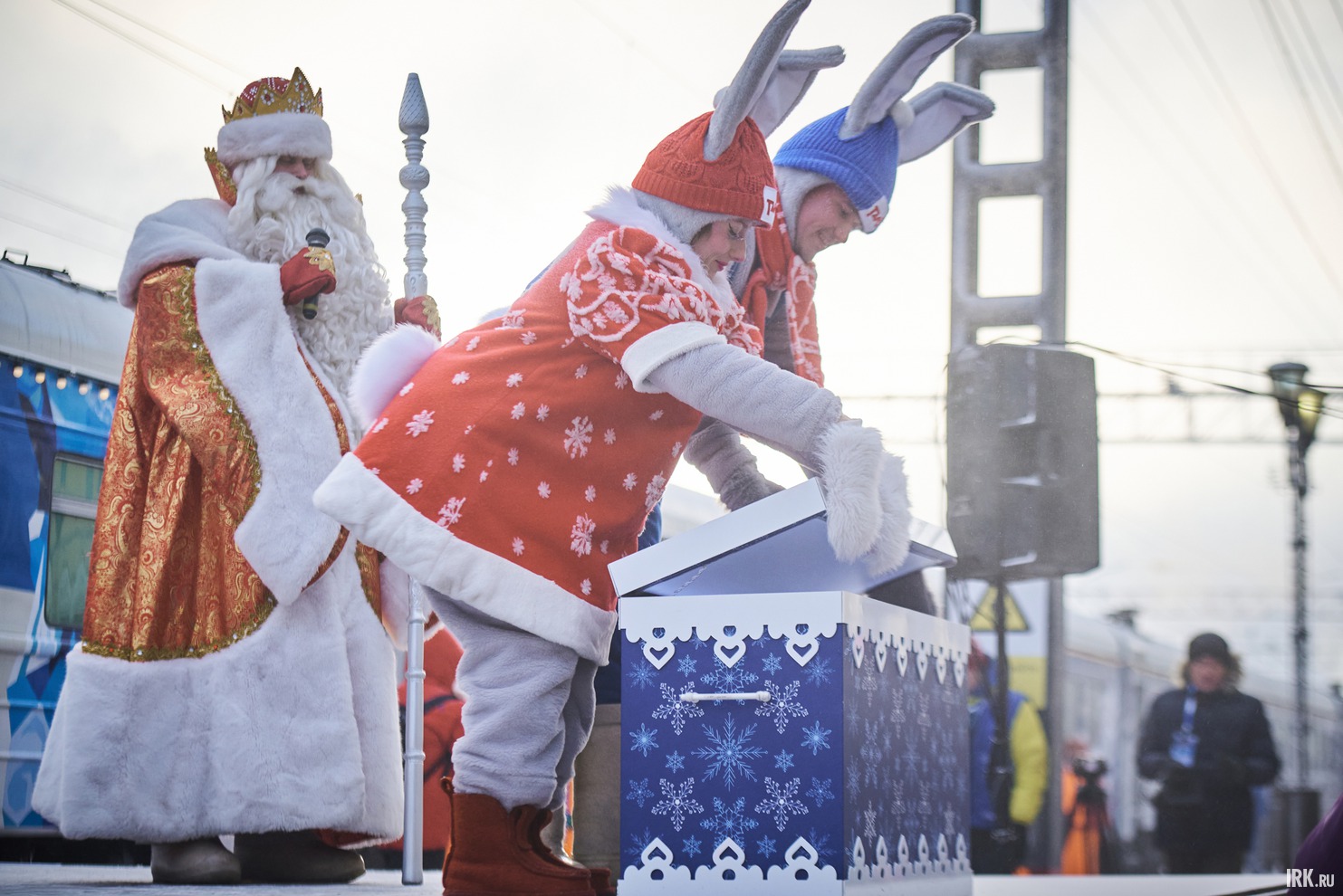 2 декабря 2025 года на станции Иркутск-Пассажирский ребятишки и взрослые встречали главного зимнего волшебника и его команду. Несмотря на морозное утро, на перроне было много желающих поздороваться с Дедом Морозом из самого Великого Устюга.