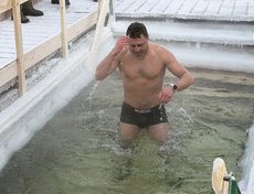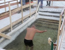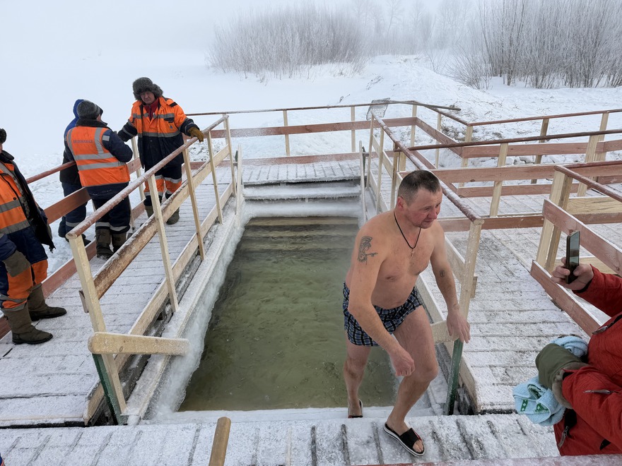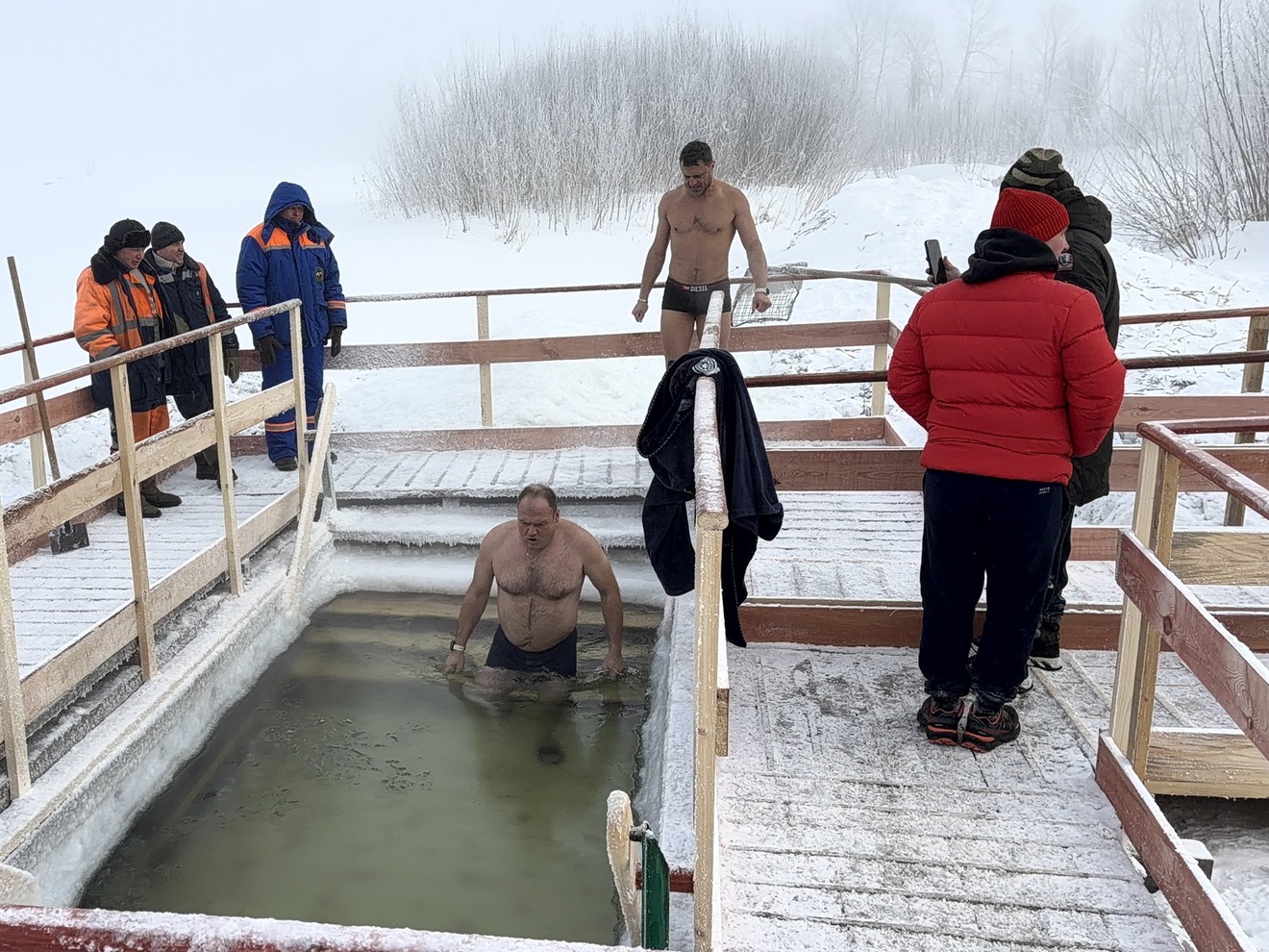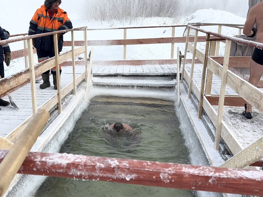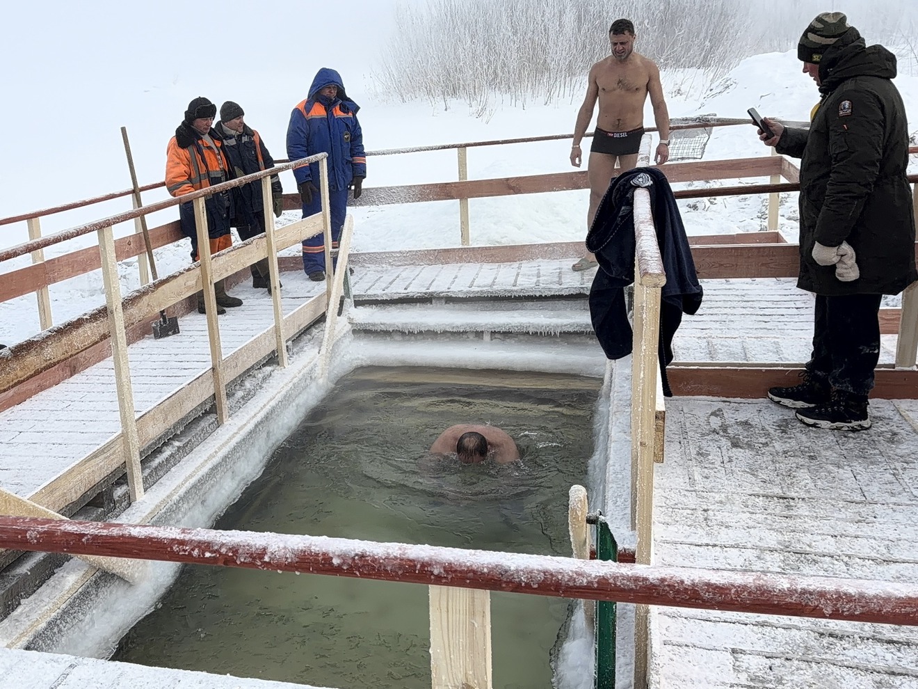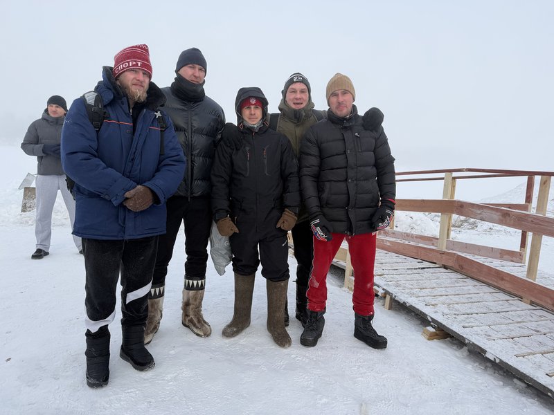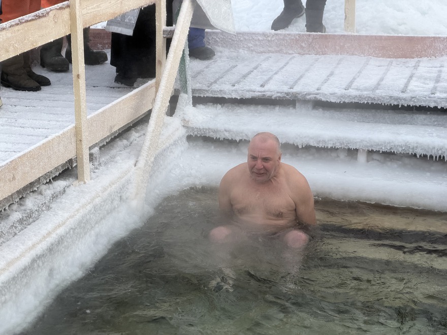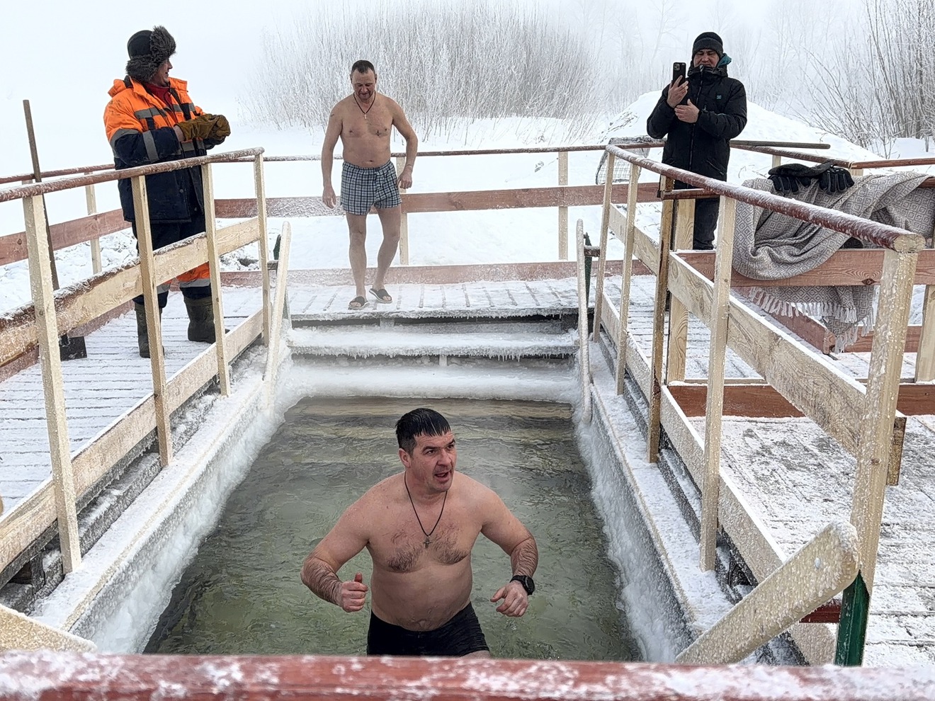 Представители разных видов спорта встретились у иордани, некоторые окунулись в прорубь при температуре -37 градусов. Обряд сопровождал мастер спорта по боксу, отец Евгений Каплунов.