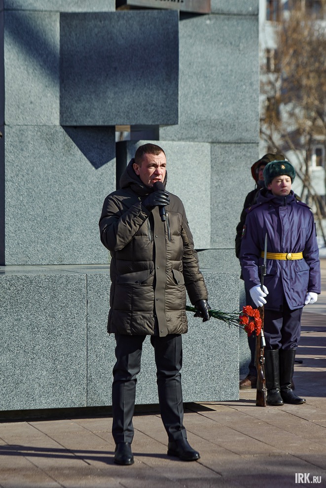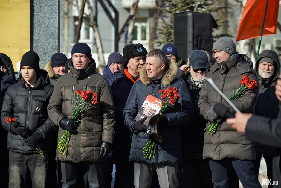 Участие в митинге приняли губернатор Иркутской области Игорь Кобзев, заместитель председателя Законодательного собрания региона Виталий Перетолчин, мэр Руслан Болотов, члены совета почётных граждан Иркутска Гайдар Гайдаров и Александр Ханхалаев, председатель Общественной палаты города Станислав Гольдфарб и участник программы «Герои Приангарья» Евгений Косолапов.