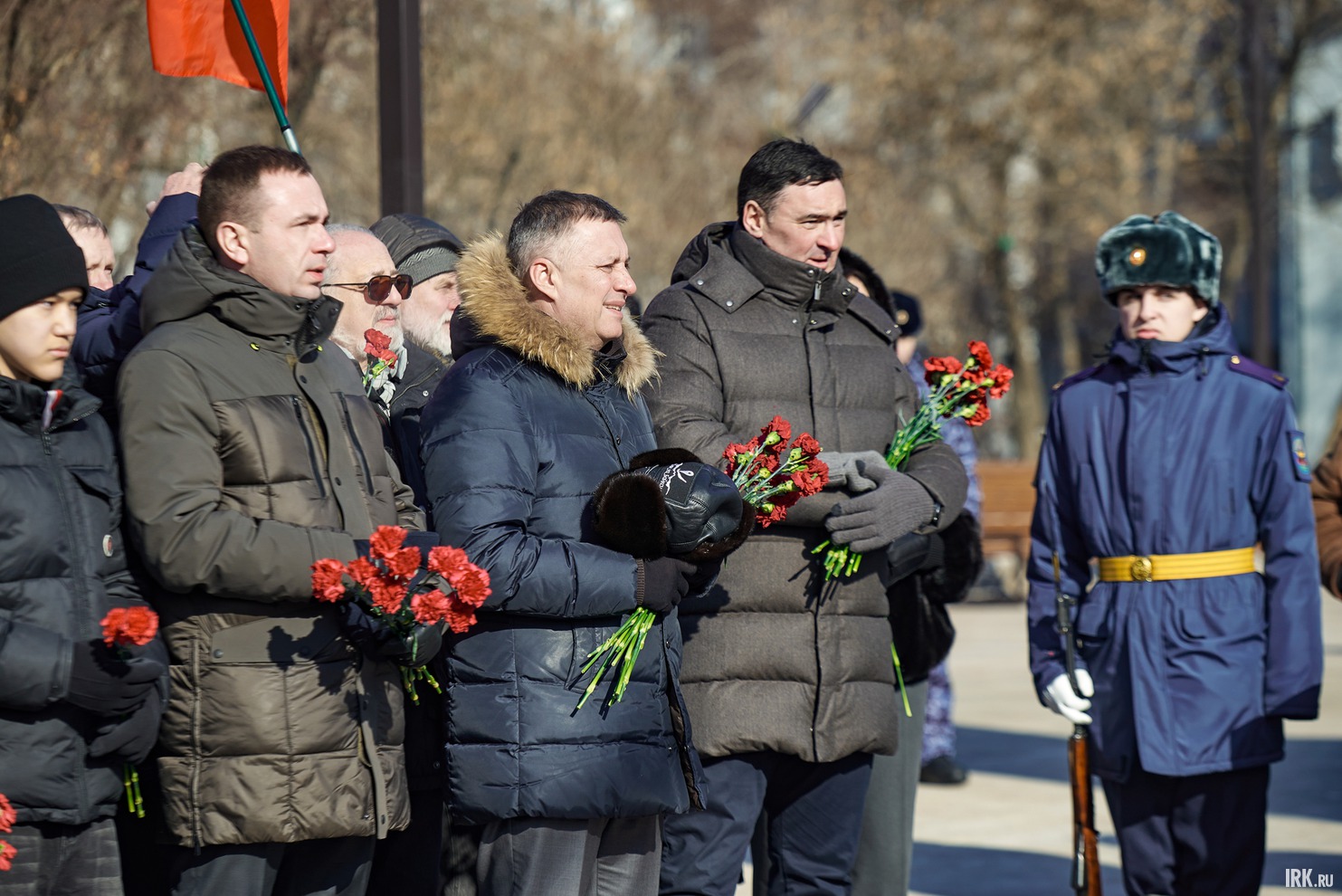 23 февраля 2026 года на площади Декабристов в Иркутске состоялось торжественное мероприятие, посвящённое Дню защитника Отечества. У памятника «Дед, Отец, Сын» собралось более 500 человек: ветераны, действующие военные, курсанты, школьники и неравнодушные горожане.