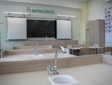 В школе откроют классы инженерного, гуманитарного и естественно-научного профилей, а также кабинет химии для учеников 8-11 классов. Оборудовать его и оформить стены в классе помогла компания «Фармасинтез». Все помещения оснащены тремя типами досок: интерактивными, маркерными и меловыми. В здании есть бассейн, хореографический класс, спортзал, актовый зал и столовая. Объект построили по национальному проекту «Образование».