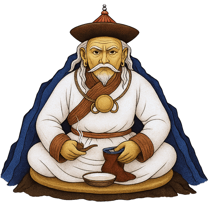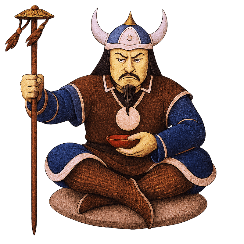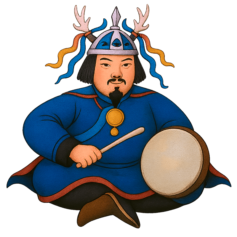Главный атрибут черных шаманов. Делается индивидуально для каждого шамана, сам по себе он – просто музыкальный инструмент, оживляют его на специальных обрядах. С внутренней стороны он разделен на четыре части, символизирующие стороны света – юг, север, запад и восток.