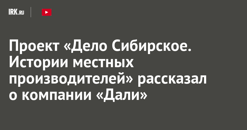 Проект «Дело Сибирское. Истории местных производителей» — это серия из 15 видеороликов, посвященных историям иркутских предпринимателей. В каждом выпуске ведущая Анна Суркова знакомит зрителей с талантливыми людьми, которые с любовью и страстью создают местные продукты, отражающие разнообразие сибирской культуры.