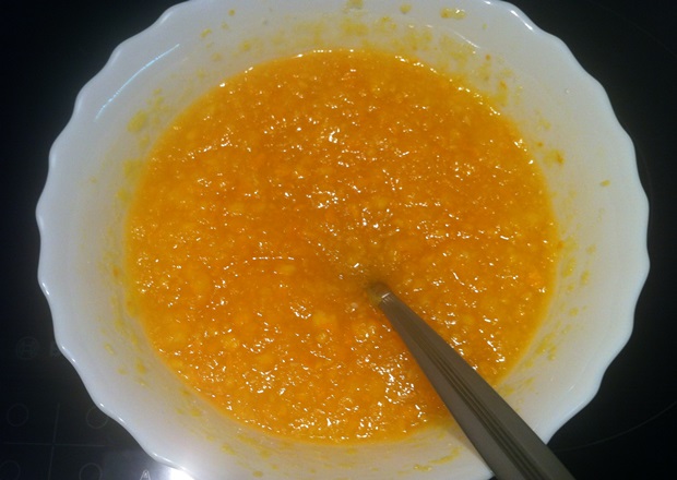 Рецепт взяли из группы VK Кулинарные хитрости. У них там лимонный, у нас в холодильнике не оказалось лимонов, зато было два больших апельсина. Рассказываем, как это было, и сразу просим прощения, если кому-то фотографии не доставят удовольствия. Мы научимся, честно.