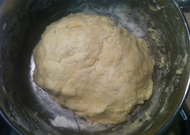 2. Засыпаем муку понемногу, небольшими порциями, тут же размешиваем. Останавливаемся, когда тесто перестанет липнуть к рукам.