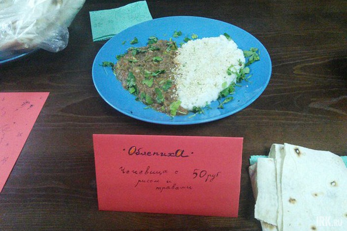 Все приготовлено из сибирских экологически чистых продуктов, на поиск которых у девушки ушло около недели. Чечевица приготовлена по секретному кенийскому рецепту, я выпросила ее попробовать. Вкусно.