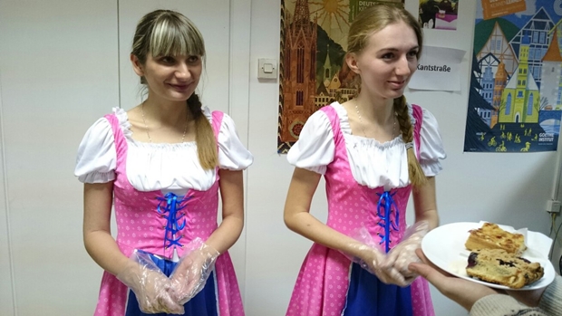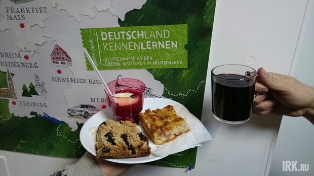 17:40 Прямо сейчас идет презентация о еде в Германии. Рассказывает Любовь Окладникова, преподаватель Центра немецкого языка имени Вильгельма фон Гумбольдта.