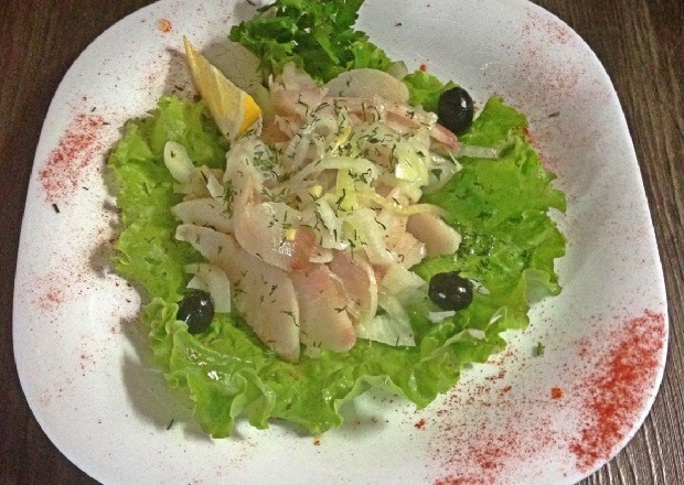 — рыба: форель, либо речная, либо океаническая (стейк на огне).