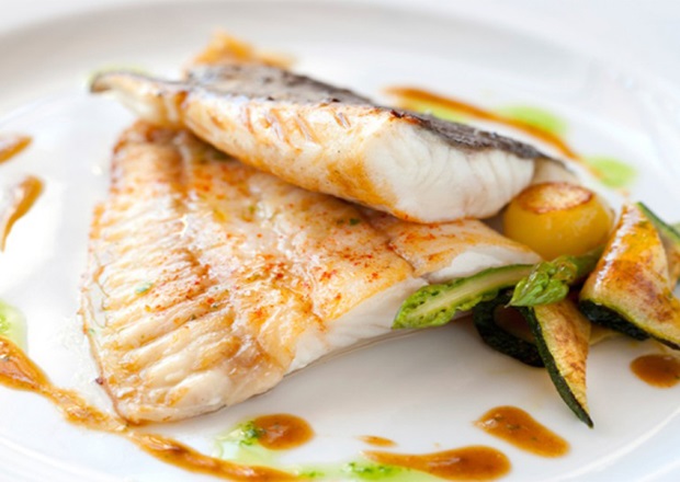 Рыбная тарелка — 620/500/300 граммов — 1800 рублей. Блюдо включает: стейк из семги, стейк масляной рыбы, филе судака, вомер (рыба Луна), шашлык из рапе (рыба Чёрт) с томатами черри. Гарнир: отварной картофель, брокколи и спаржа, жаренные в масле, помидоры черри. Соусы: сливочно-креветочный, овощной тартар, соус на основе сливочного масла со свежей зеленью.