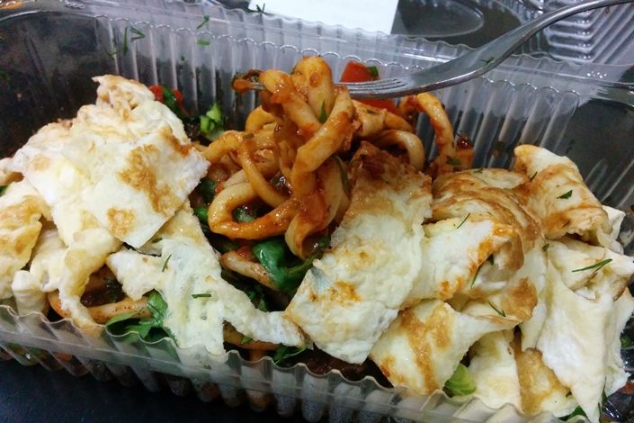 Повар «Кинзы» представил свою интерпретацию жареного лагмана, обильно снабдив его омлетом. В описании блюда это вообще не было указано, а по факту яйца было даже больше, чем лапши. Хотя, казалось бы, какой смысл экономить на мучном изделии. Дегустатору показалась порция лапши маленькой, наесться можно было едва-едва.