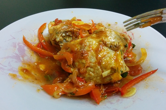Из-за негерметичной упаковки блюдо чуть больше остыло, чем супы, пришлось разогревать. Но вкусовые свойства от этого не потерялись. Чахохбили понравилось: в меру острое, сочное, насыщенное специями. Возможно, чуть не хватало соли, но это исключительно дело вкуса, да и поправимо. Также можно было бы поспорить, насколько добавление болгарского перца соответствует традиционной рецептуре, но делать этого не хотелось, потому что вкусно.