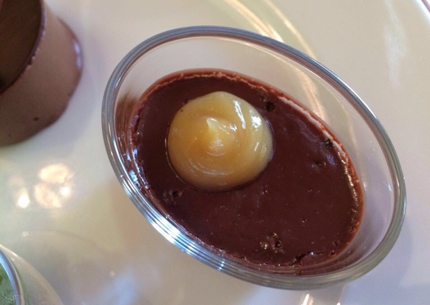 — «Пот де крем со сливами мирабель и кунжутом» из темного шоколада (Санта-Доминика);