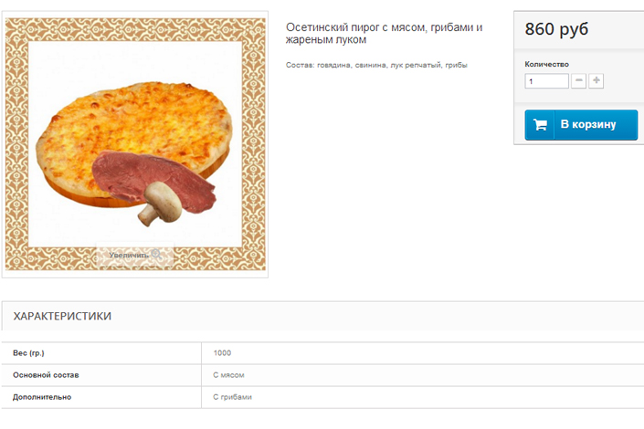 Отдельно стоит отметить иллюстрации. Так как пироги закрытые и с виду, независимо от начинки, абсолютно одинаковые, создатели сайта не стали фотографировать их в разрезе. Вместо этого пошли на трогательную хитрость: «прифотошопили» картинку, символизирующую начинку, поверх изображения лепешки.