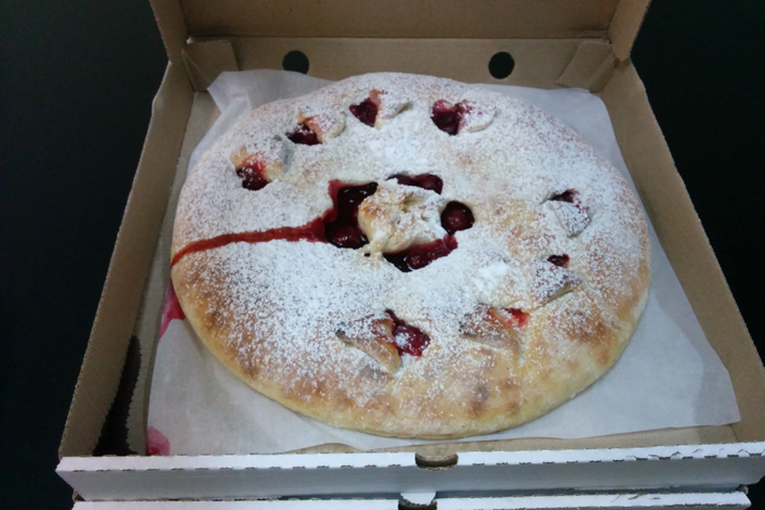 Заказ курьер передал из рук в руки на парковке, но было немного затруднительно нести четыре несвязанных коробки в офис. К счастью, все пироги добрались до стола в целости и сохранности. От них исходило тепло и доносился приятный аромат.