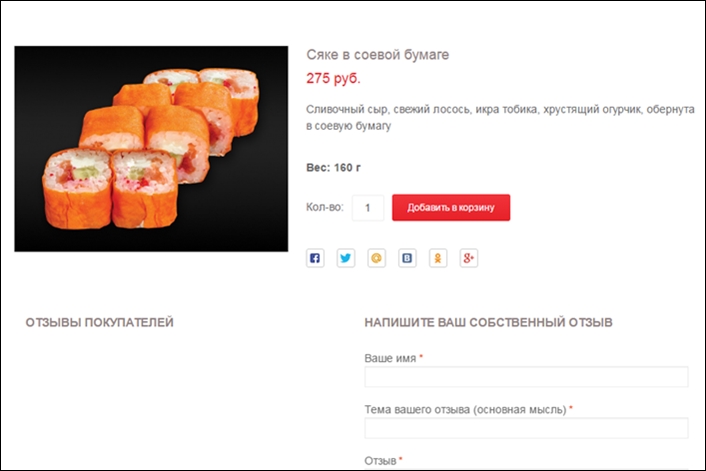 На сайте есть самые необходимые разделы: меню, акции, условия доставки, информация о ресторане, контакты. Отзывы тоже имеются, но их можно найти, только посмотрев в самый низ главной страницы. И два из трех откликов — резко отрицательные: описание блюд в меню не соответствовало фактическому составу, также отмечены нерасторопность и забывчивость персонала.
