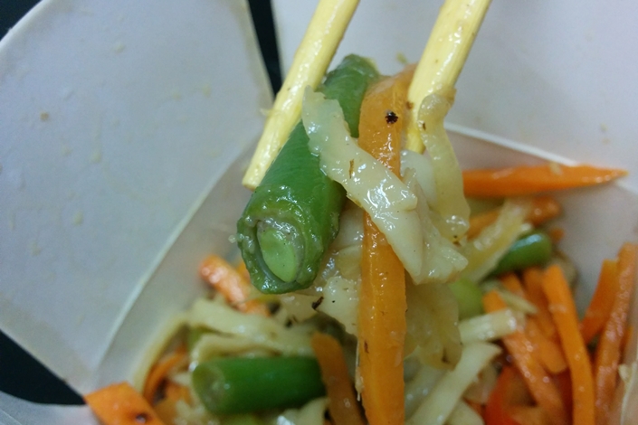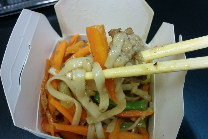 Кроме того, нужно было постараться, чтобы найти мясо в лапше. Находка разочаровывала: перед нами полуразваливающиеся кусочки-ниточки практически без вкуса. Ах да, специй и соли в блюде катастрофически не хватало. Отправили в коробочку две ложки соевого соуса, чтобы хоть как-то сделать блюдо приятнее.