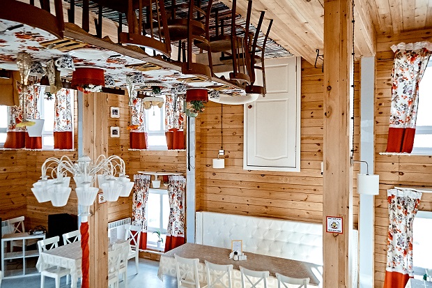 Новая порция чудес — это и сам интерьер «Тормашки». У нас «живут» удивительные вещи — прадедушка Skype (скайп), древнее пианино с радужными клавишами, предок радио, бабушкин буфет. Кроме того, вы когда-нибудь видели стол или комод, «стоящие» на потолке? Кресла, стулья, диваны и даже детская железная дорога тоже «парят» в воздухе. У нас на потолке даже висит груша, но ее, к сожалению, «нельзя скушать». В общем, наш интерьер вы можете рассматривать не один час.