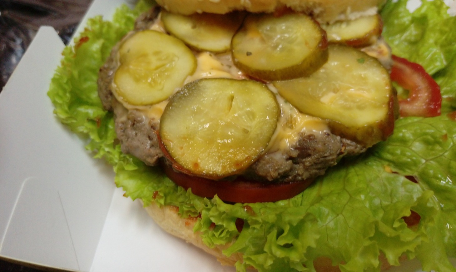 Оказалось, что за среднего размера котлетку, положенную в аккуратную булочку. Еще за квадратик сыра, небольшое количество соуса и кусочки огурца. В общем, технология приготовления проще, чем сварить пельмени. А на фото всё выглядело куда красивее: больше овощей, блюдо более упитанное.