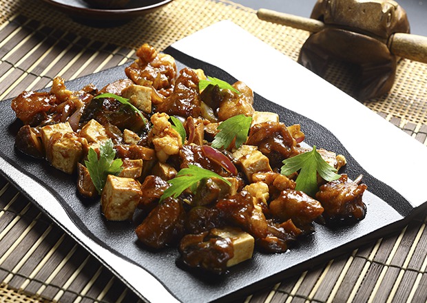 — кусочки косули в кляре, обжаренные с тофу и креветками — 850 рублей;