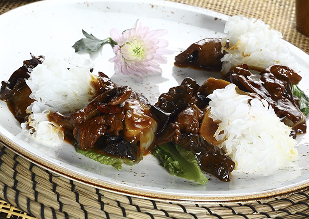 — кусочки оленины с овощами, вешенками в соусе Бо — 890 рублей;