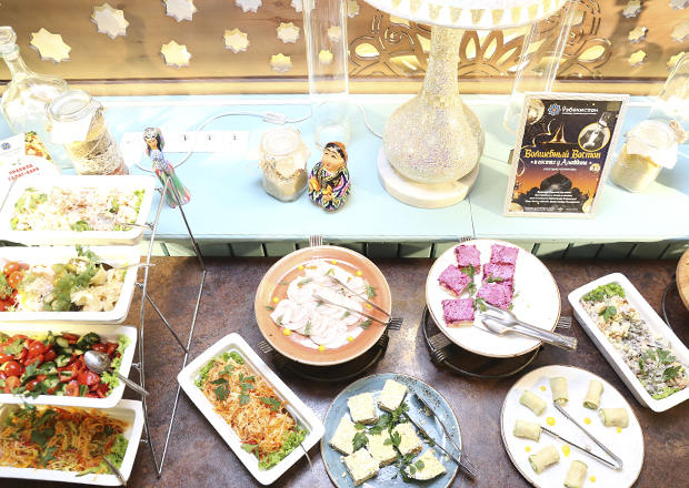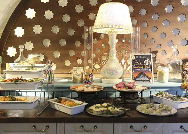В будни в ресторане «Узбекистон» бизнес-ланч представлен в нескольких форматах, но самым популярным и любимым у гостей стал салат-бар. Каждый будний день с 12:00 до 16:00, заплатив всего 290 рублей, можно набрать на тарелку столько еды, сколько захочется, не ограничиваясь рамками стандартного обеда.