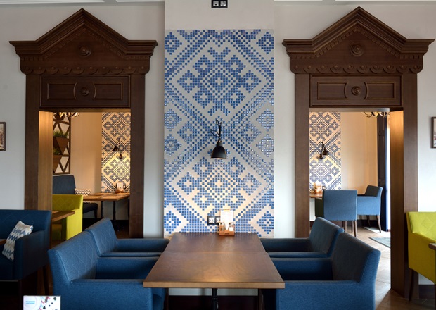 2. В ресторане уникальный дизайн. Идея принадлежит архитектору Евгении Ганно. Художник сумела соединить в интерьере классику и современность, сибирское деревянное зодчество и модные эко-тренды, традиционные русские узоры-орнаменты и европейскую сдержанность.