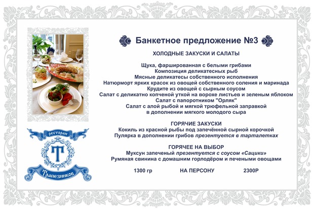Выбрать ресторан для проведения любого банкета — задача непростая. Даже если вас все устраивает в заведении, где вы регулярно ужинаете, далеко не факт, что здесь же вам будет уютно проводить праздник. Во время торжества особенно хочется, чтобы о каждом госте позаботились, блюда и напитки приятно удивляли, в зале было красиво и ничего не отвлекало от застолья. Любая мелочь может все испортить! И это очень хорошо известно ресторану «Трапезников».