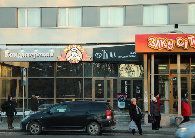 Несмотря на самый центр города, здесь варианты, оказались демократичнее и оперативнее. Быстро нальют чаю в кафе-кондитерской «Блисс», сварганят буз в трех позных (одна рядом с «Сабвеем», другая – с клиникой стоматологии, третья – в здании стадиона), накормят обедом в столовой «Аппетит». В «Тревелерс кофе» нередко бывают проблемы с обслуживанием и качеством блюд, туда бы я не пошла – лучше уж перейти через дорогу, попасть в 130-й квартал и выбирать из множества более стабильных в сервисе заведений.