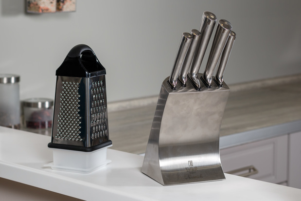 Ни одна кухня не сможет обойтись без ножей. «Всё для дома» рекомендует иметь как минимум три ножа: поварской, для овощей и хлеба. При покупке важно обратить внимание на качество стали и лезвие. Для лезвия лучше всего подходит нержавеющая сталь, она легка в уходе и долговечна в использовании. Осмотрите рукоять, она должна быть нескользкой, например, как легированная сталь.