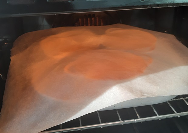 Ставим формы в емкость, которую осторожно заполняем кипятком так, чтобы вода доставала до половины креманок. Накрываем листом бумаги для выпечки.