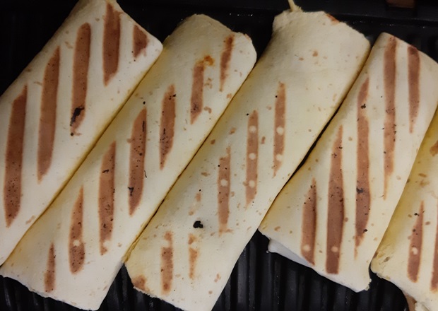 Последний штрих — эстетический. Обжариваем буррито по паре минут с каждой стороны.