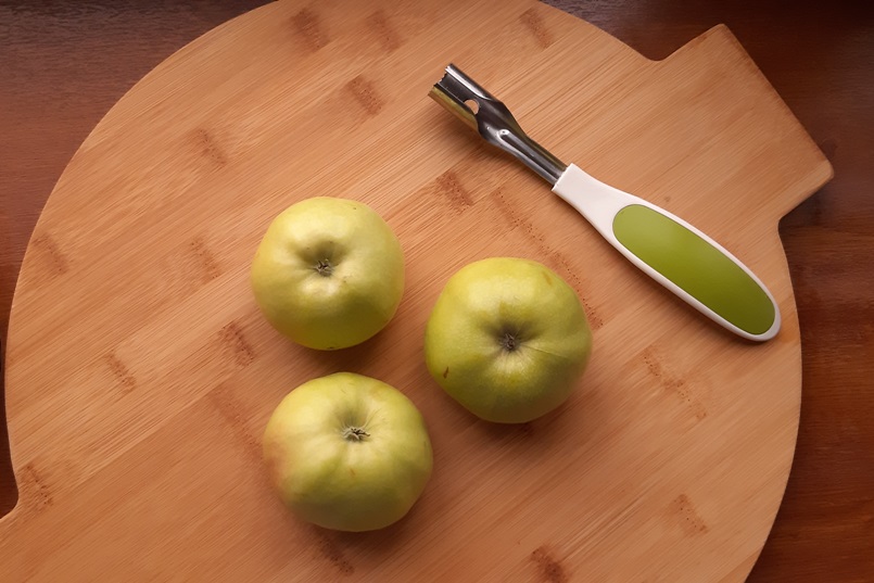 Теперь начинка. Вымойте изюм в теплой воде, залейте алкоголем. Из яблок удалите сердцевину, нарежьте их тонкими пластинками. Вкусные кислые яблоки в Сибири найти тяжелее, чем омуля. Мне повезло – в продаже были российские «Богатырь», которые, кстати, приходятся родственниками антоновке.