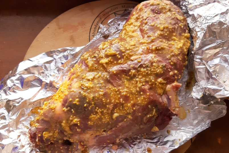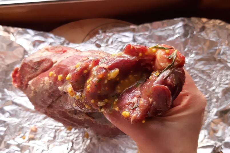 Баранья нога в горчично-медовом маринаде с чесноком и розмарином