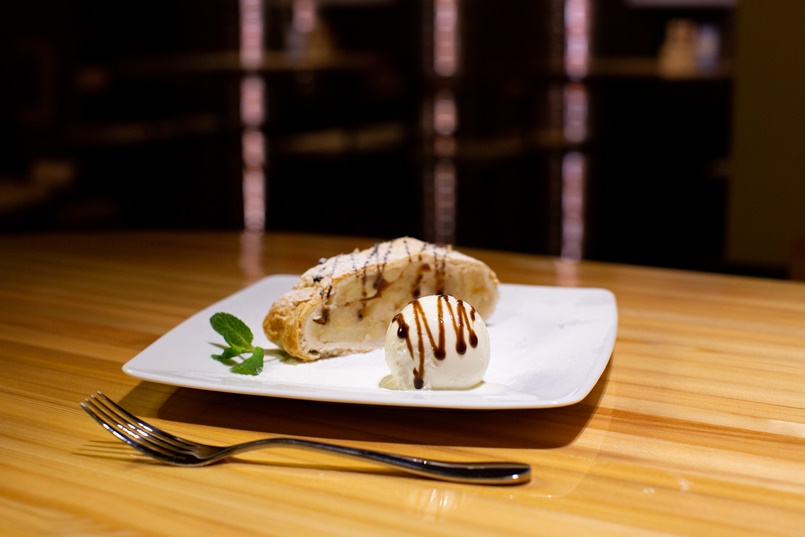 На десерт вместо торта можно попросить гедза с яблоком и корицей. Они похожи на маленькие диетические пирожки с натуральной мякотью в прозрачном тесте. Замечательно сочетается с ними клубничное варенье!