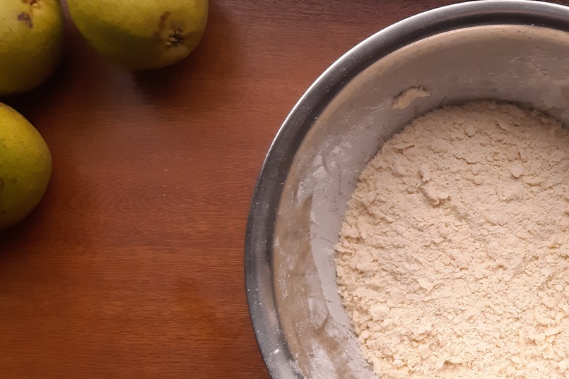 Сверху – груши. Поверх них – любимые специи. С грушей хороши имбирь или корица. Я взяла приправу, про которую рассказывала в статье о рождественском печенье.