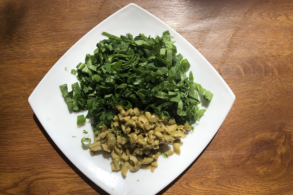 Слоеная «плетенка» с курицей, оливками и зеленью