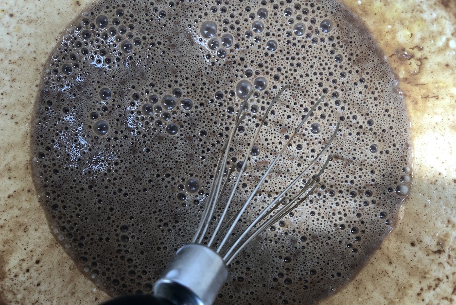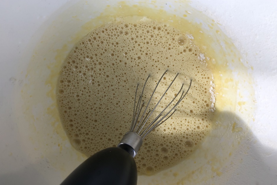 В оригинальном рецепте также используют сливки, но молоко есть в холодильнике всегда, зачем усложнять. Смешайте все компоненты. Тесто получится жидким, похожим на блинное. Так и должно быть. В процессе приготовления клафути чуть подрастет, но потом опустится, увы. Это все-таки больше пудинг, запеканка, а не бисквит.