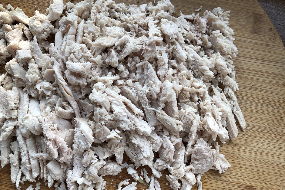 Отварим курицу. Ингредиенты можно нарезать кубиками, но по опыту вкуснее, когда нарезка помельче – вкусы кислых и сладких фруктов объединятся с терпким сельдереем и получится, что надо.