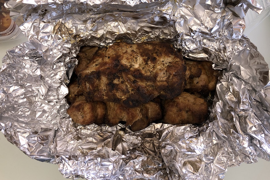 К мясу привезли свежие огурцы-помидоры, маринованный лук, лаваш. И три вида фирменных соусов: шашлычный, тар-тар, «тысяча островов». Мы впятером не справились. Пришлось звать мужчин. И все равно осталось.