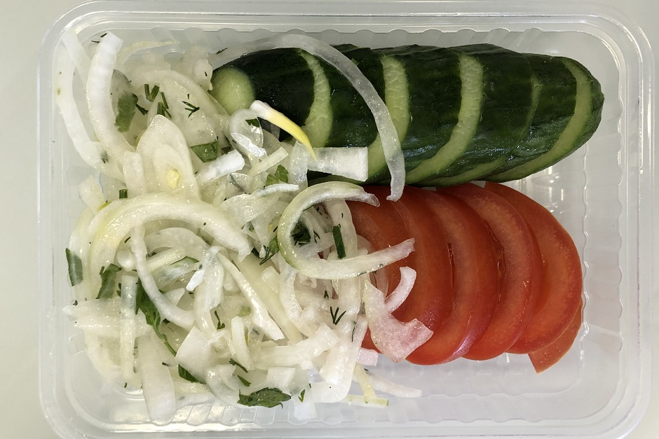 Привезли чуть раньше обещанного времени – дополнительная радость для голодных людей в канун обеденного перерыва. Все блюда в индивидуальной упаковке (вид, кстати, приличный – можно не заморачиваться с посудой и ее мытьем после праздника). Горячее дополнительно завернуто в фольгу. Спокойно дождется час и не остынет.