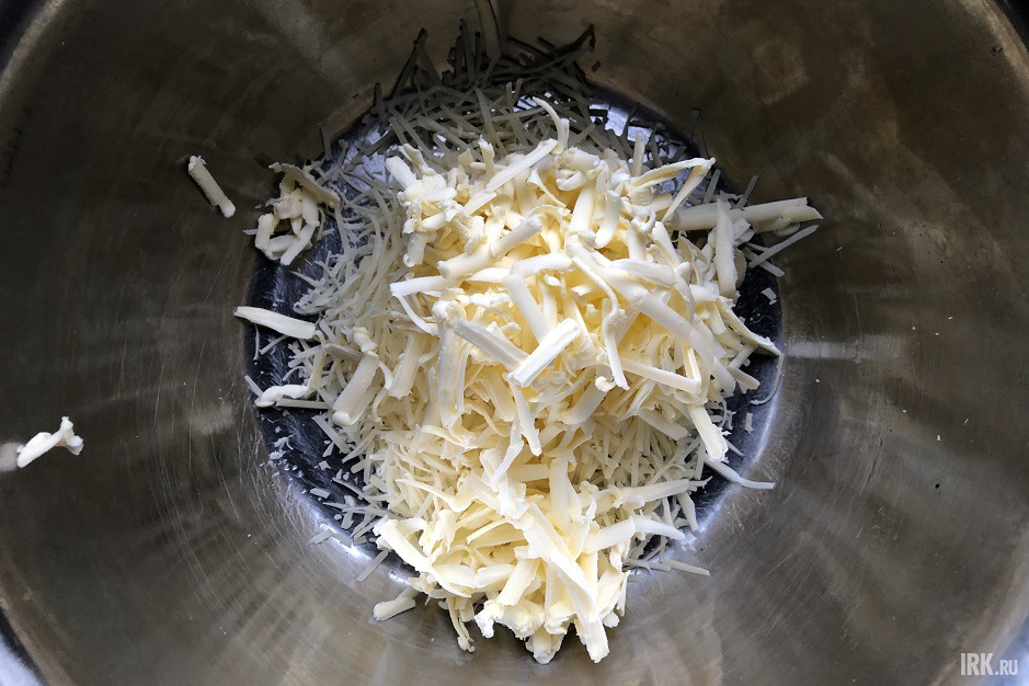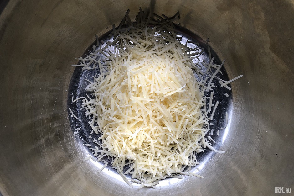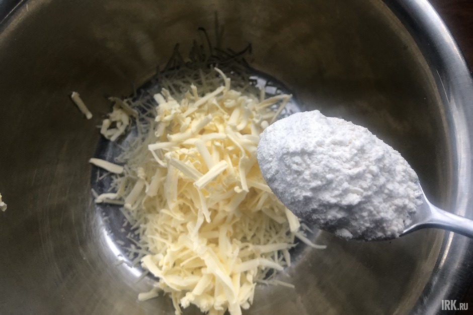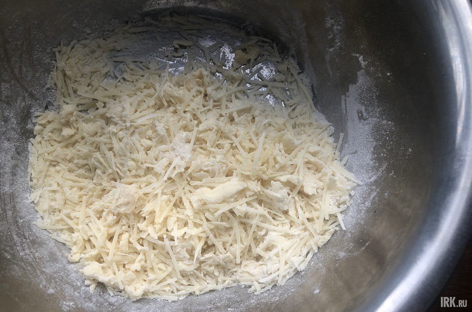 Не пугайтесь количества ингредиентов. От вас потребуется 10-15 минут активного участия. Натрем сыр. Берите любой выдержанный твердый типа пармезана. Затем – сливочное масло. Добавим в миску 3 столовых ложки муки и перемешаем. Получится крошка для верхушки нашего крамбла.