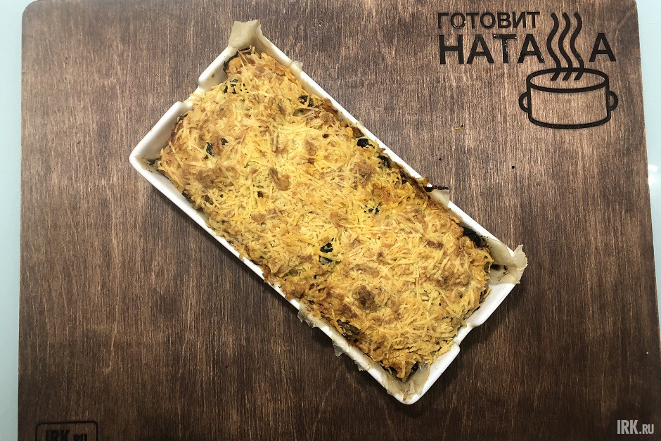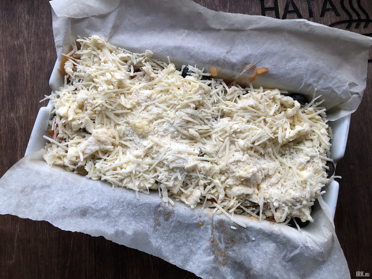 Выложим тесто в форму для выпечки, застеленной пекарской бумагой. Затем начинку, сверху – крошку. Выпекаем 40-45 минут на втором (снизу) уровне в духовке при 180 градусах. Готово.
