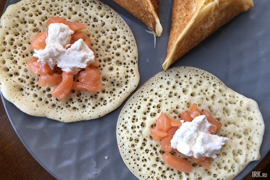 Вариантов теста и начинок – на любой аппетит. Гречневые, банановые, сырные. На кефире, минералке и из четырех яиц. С ливером, творогом, форелью или яблоками. Держите в копилку еще один – арабские блины «Катаеф». Пухлые, симпатичные малыши из дрожжевого теста. Непривычное исполнение с начинками. Не обещаю 10 минут – времени потребуется больше, чем на обычные блины. Но оно того стоит.