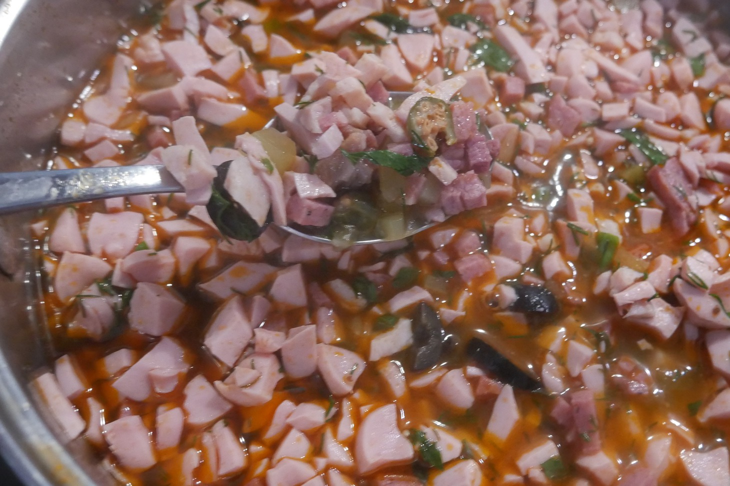 Почему солянка «по-белорусски»? Да потому что готовится из колбас, сосисок, томатной пасты, огурчиков белорусских производителей. Набор может быть любым, главное, чтобы присутствовало разнообразие. А варить на бульоне или на воде – дело хозяйское. Вкуса мясного бульона в солянке все равно не будет, а наваристость появится. Оптимально для наваристого бульона – бычьи хвосты.
